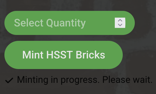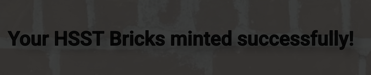 You will see a message in the HSST Bricks mint module on the website confirming that “Your HSST Bricks minted successfully!“