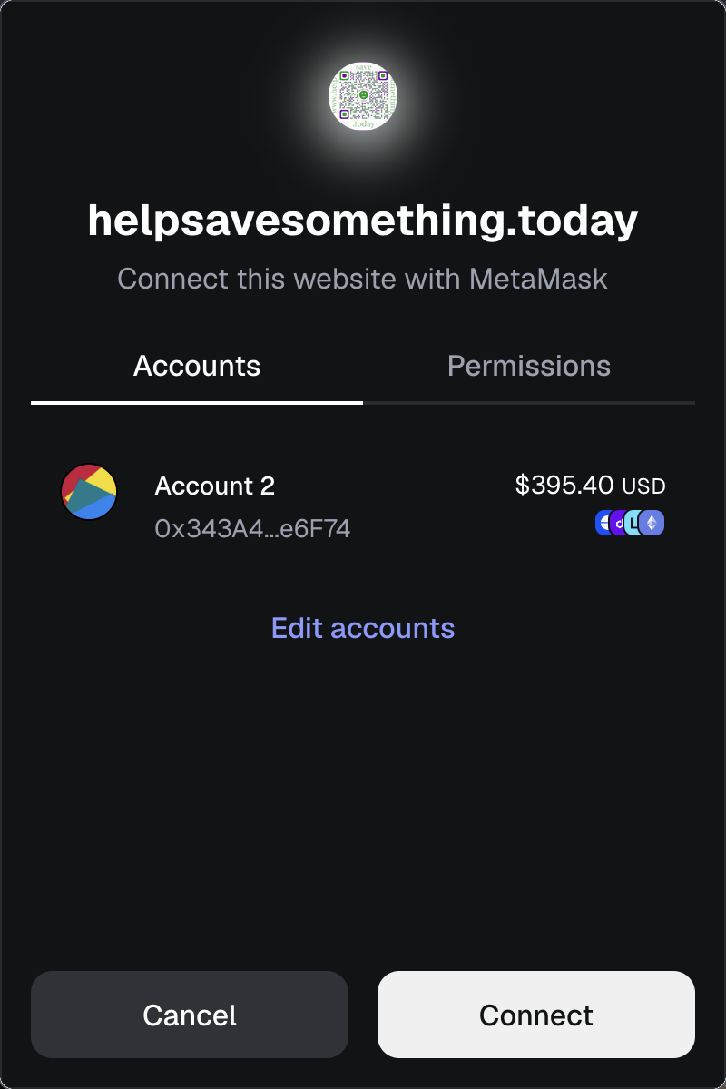 Click the “Connect” button in your MetaMask wallet to connect your wallet to the helpsavesomething.today website.